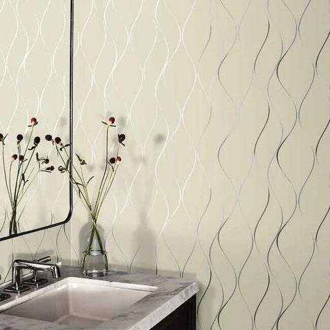 Y6201404 Wavy Stripe Beige Silver Gold Wallpaper
