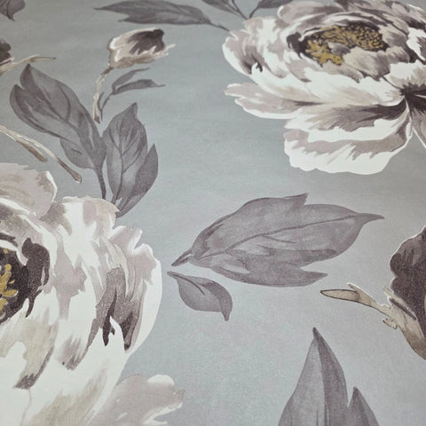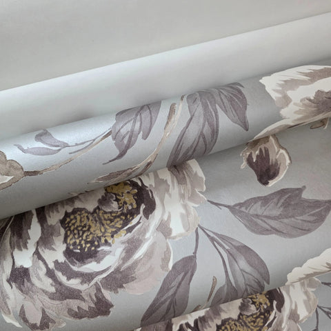 CB11008 Floral Purple white brown silver large peony flowers botanical blooms Wallpaper