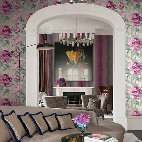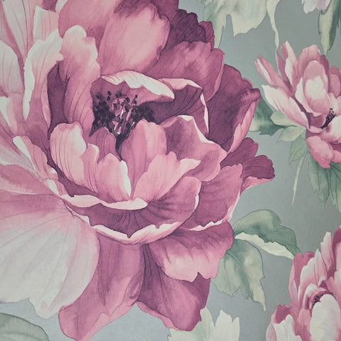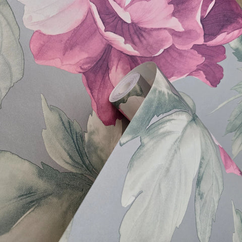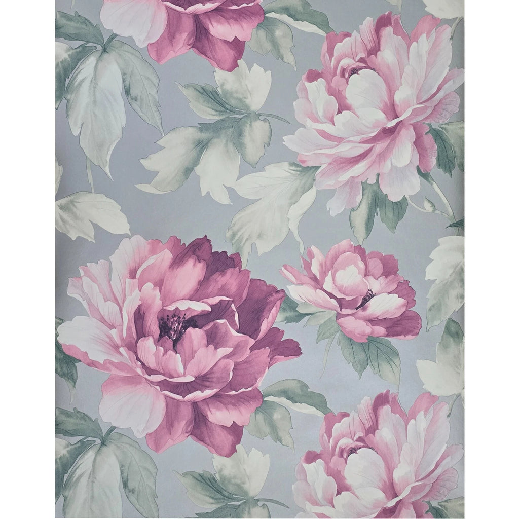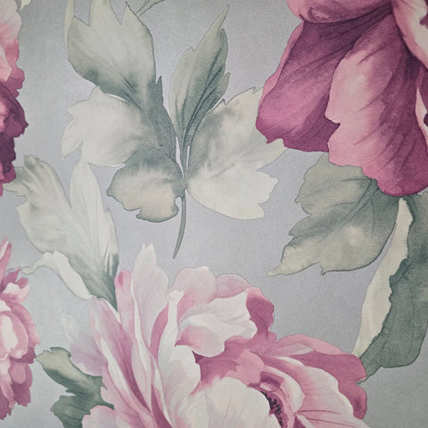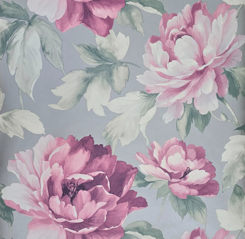CB90009 Floral silver metallic pink large peony flowers focal botanical blooms Wallpaper