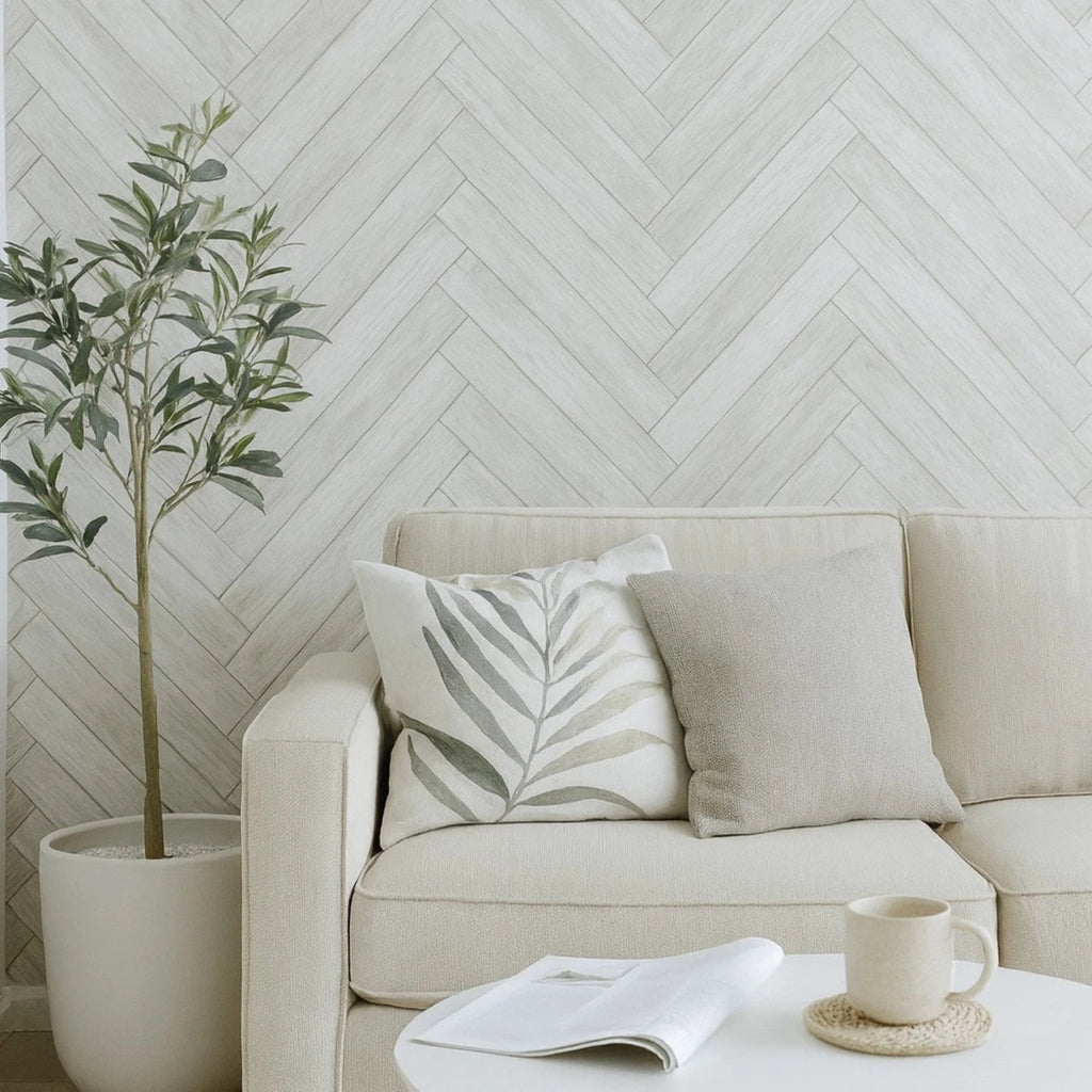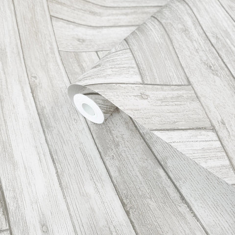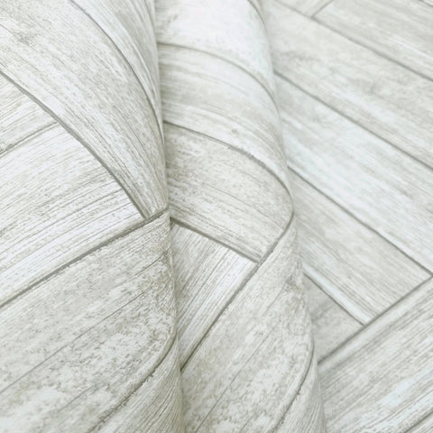 IR70405 Rustic Soft gray brown zigzag herringbone Distressed faux wood planks Wallpaper