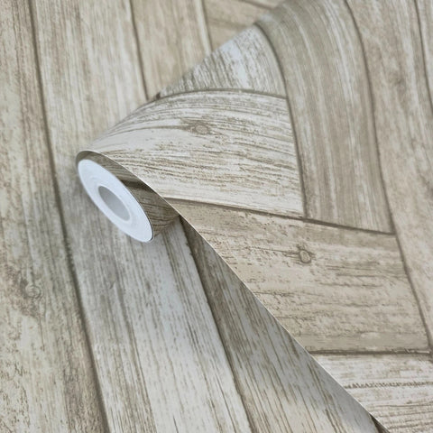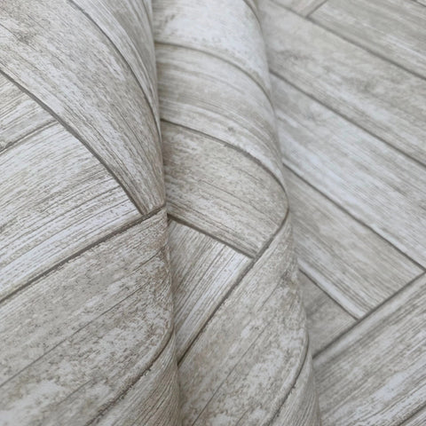 IR70406 Light brown soft beige zigzag herringbone Distressed faux wood planks Wallpaper