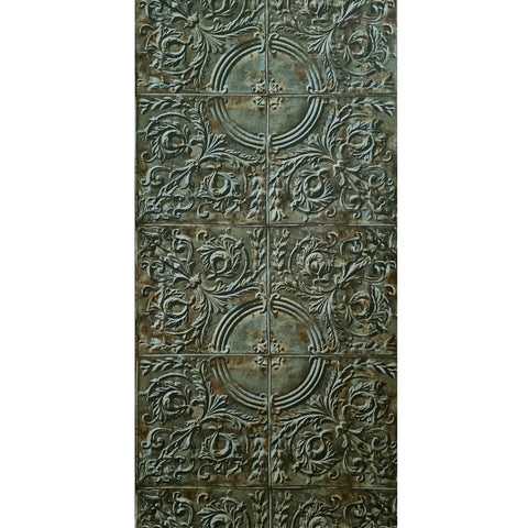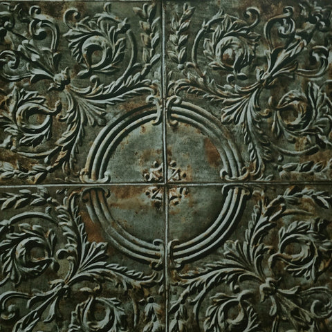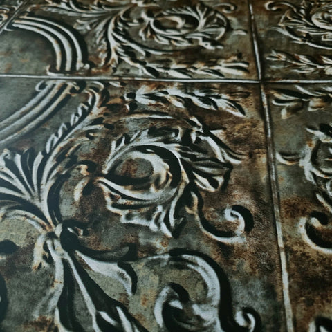 IR70607 Olive green brown rusted reflection distressed antique tile scrollwork wallpaper