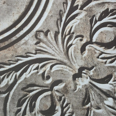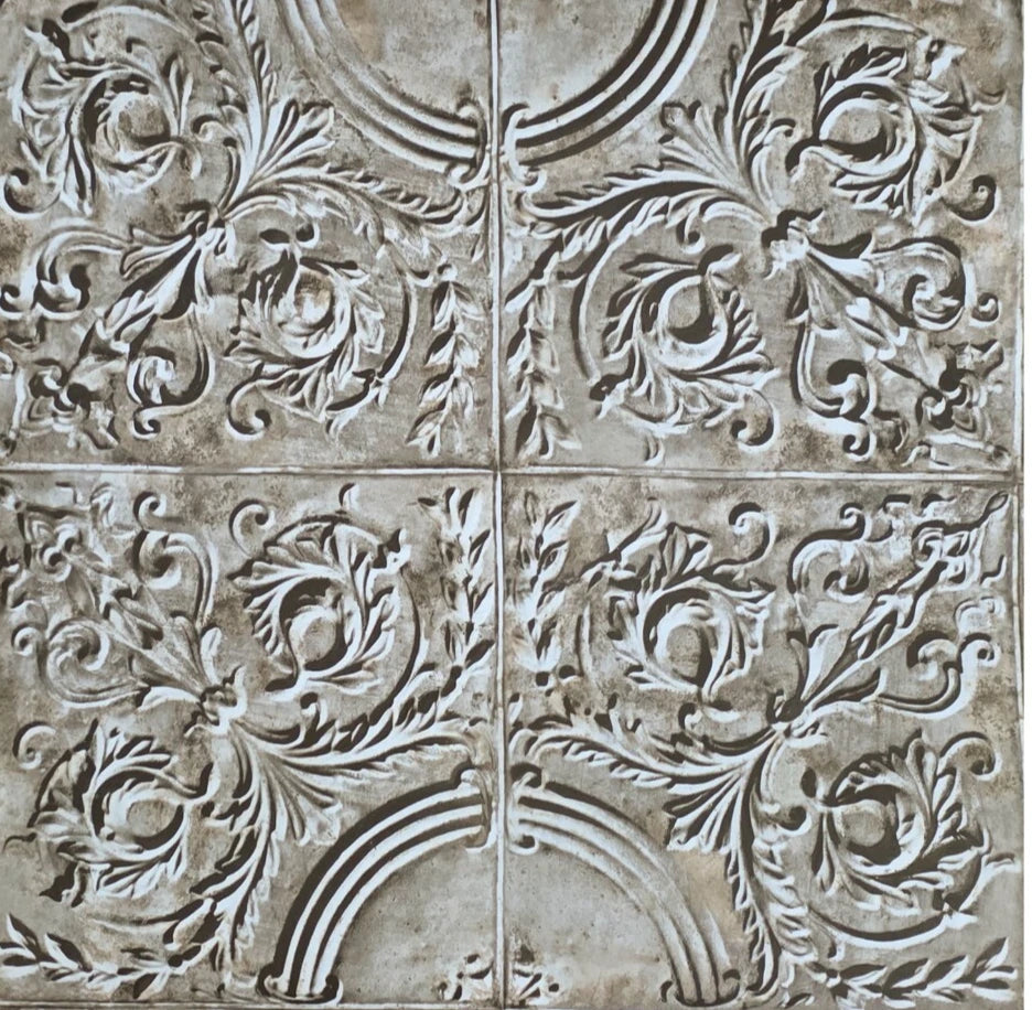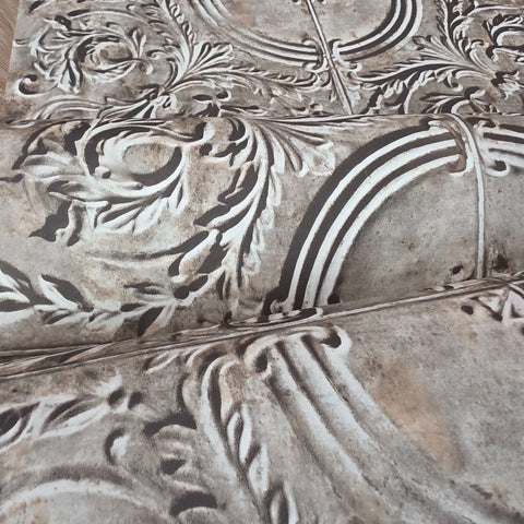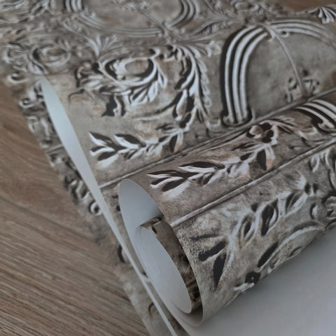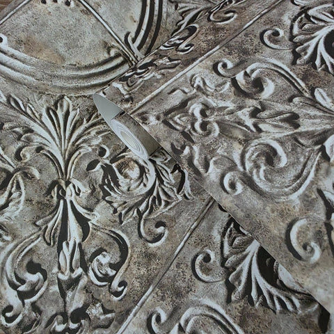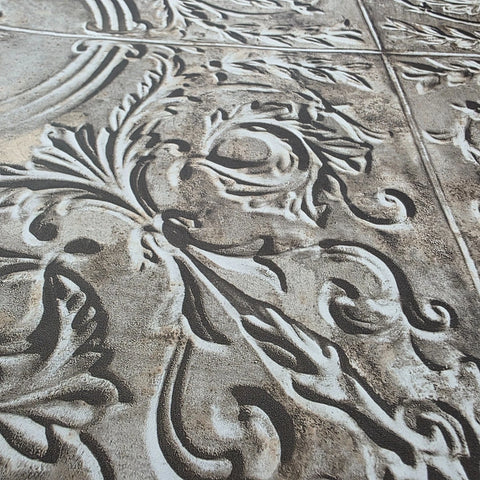 IR70608 3D antique tile scrollwork pattern design wallpaper Gray brass wallcoverings 3-D