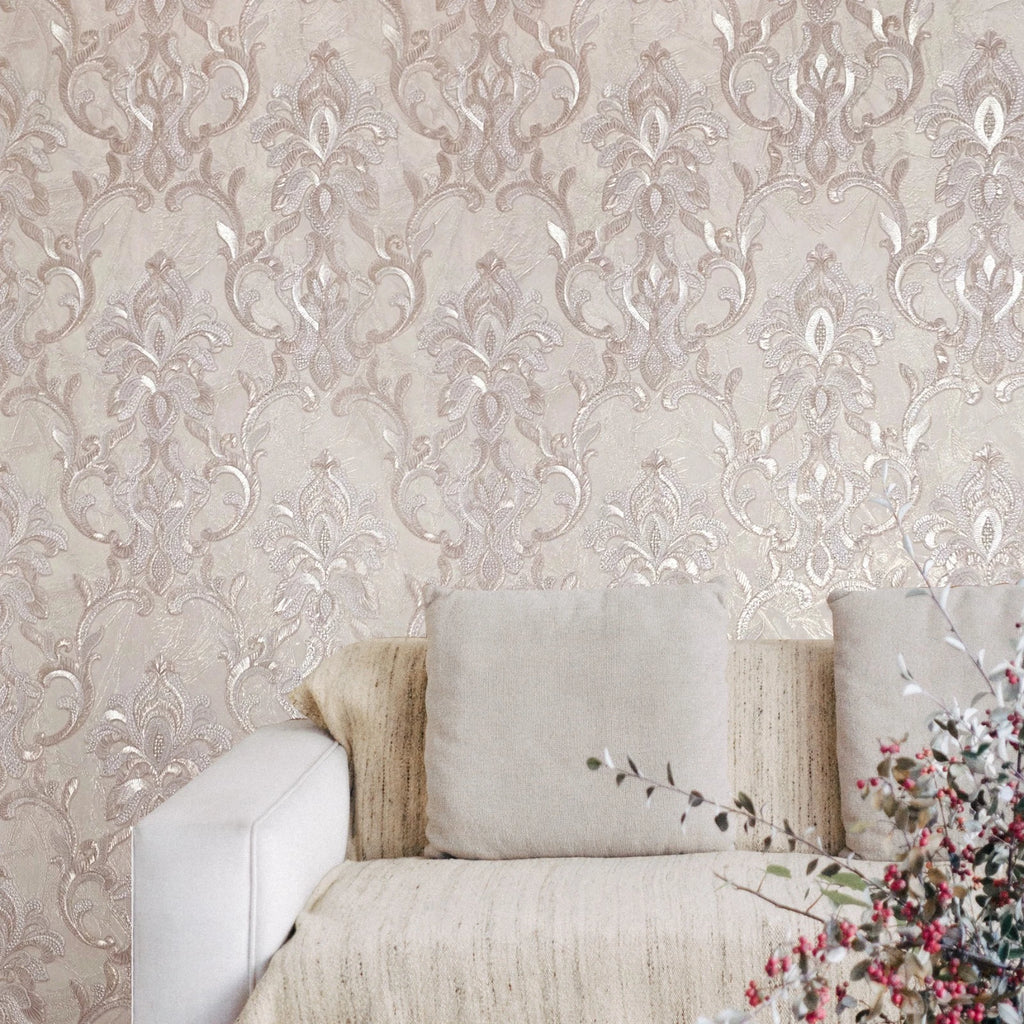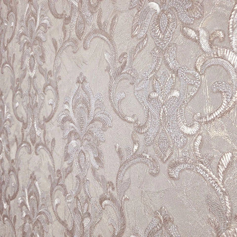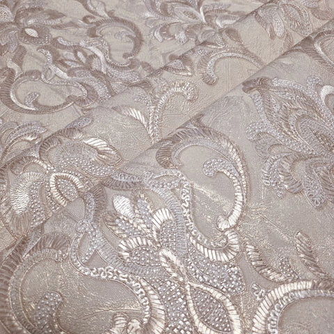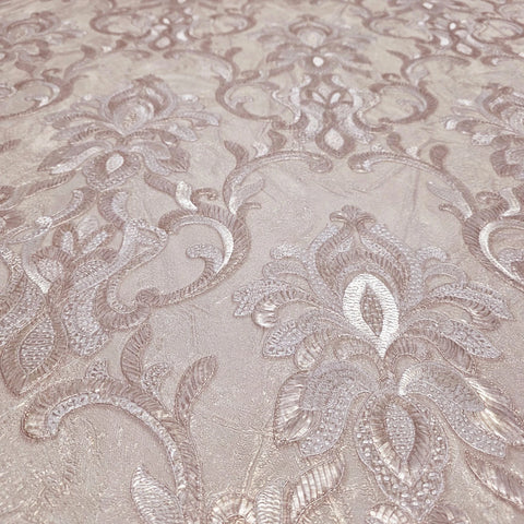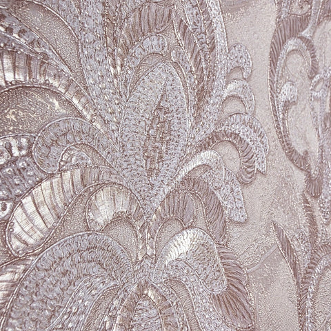 Z34931 Embossed Rose gold metallic faux plaster textured Victorian damask Wallpaper 3D