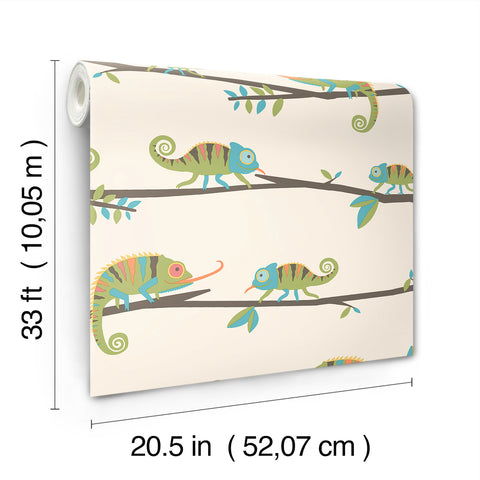 4203-27559 Chameleon Family Green Canopy Stroll Wallpaper