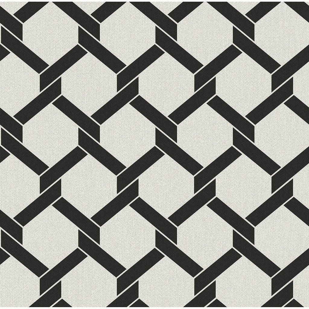 2971-86310 Payton Black Hexagon Trellis Wallpaper