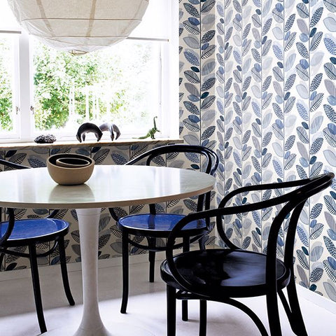 2904-25682 Nyssa Blue Leaves Wallpaper