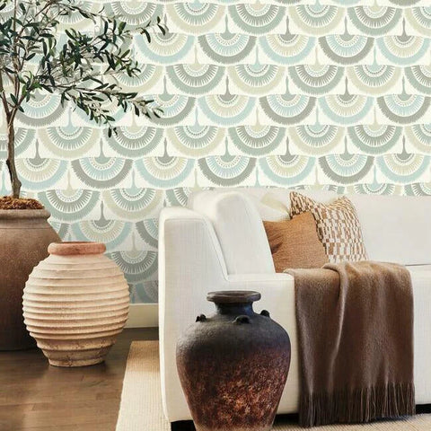 BO6643 Feather Fringe Neutral Blue Wallpaper