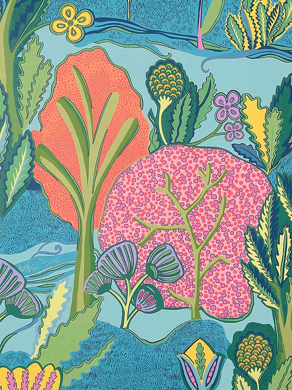 T45012 Albero Tangerine and Turquoise Wallpaper