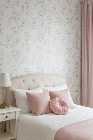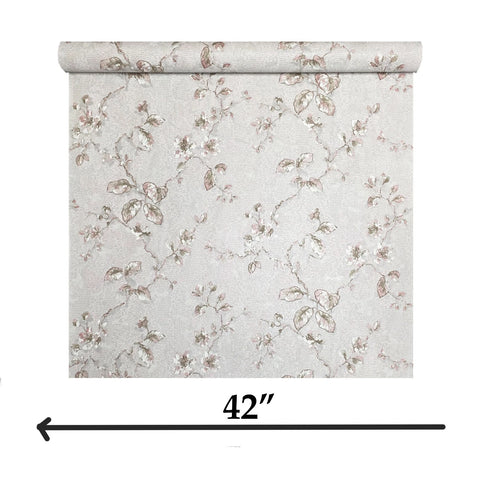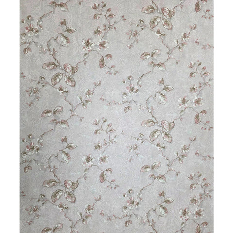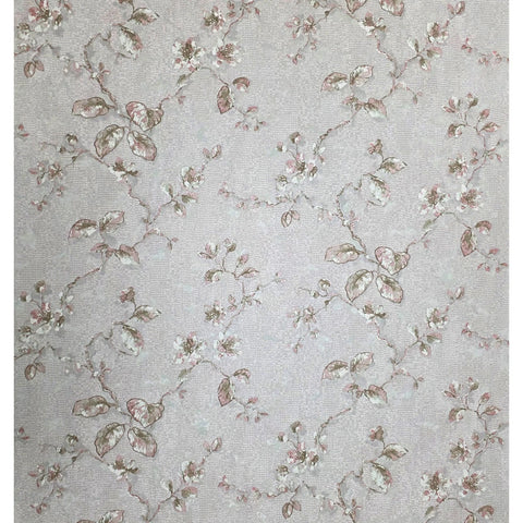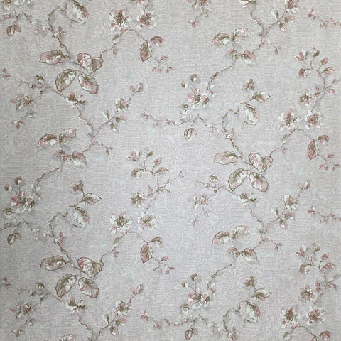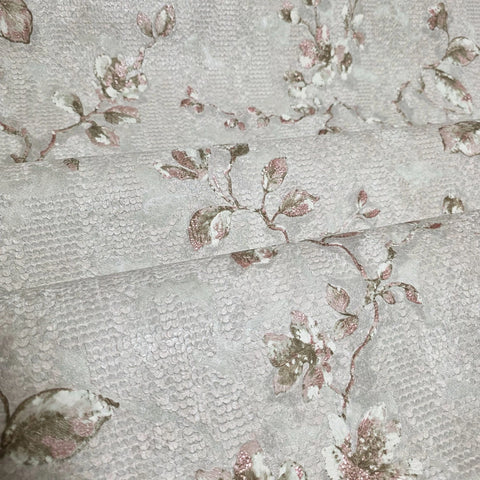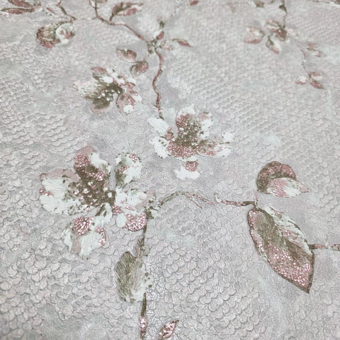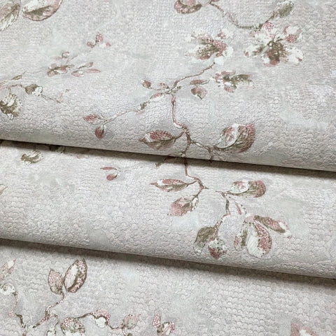 Z10907 Grayish rose distressed fish scale plaster textured floral branches Wallpaper 3D