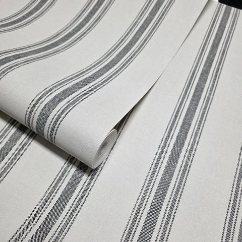 SR20600 Classic vertical Stripes Gray off white striped faux fabric textured wallpaper