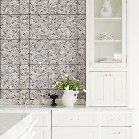 2697-78005 Intersection Silver Geometric Wallpaper